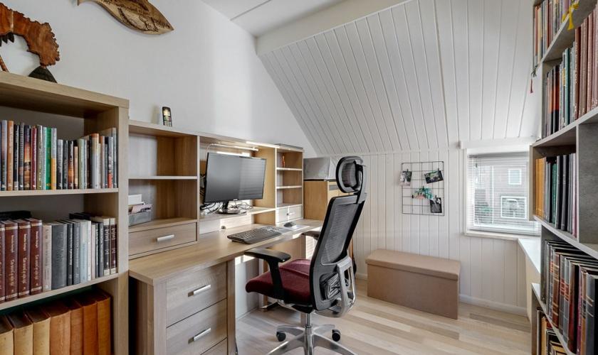 Tweede verdieping: Vaste trap naar de zolder waar nog eens twee extra slaapkamers zijn gerealiseerd, ideaal als tienerkamers of hobbyruimte.