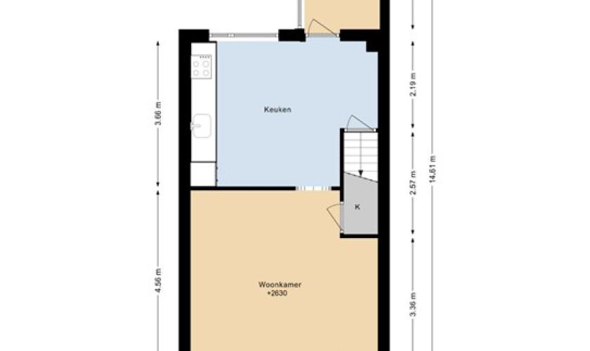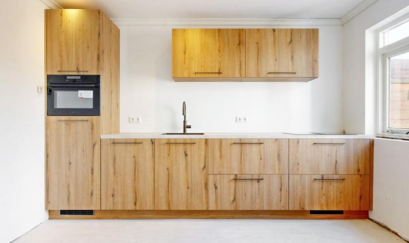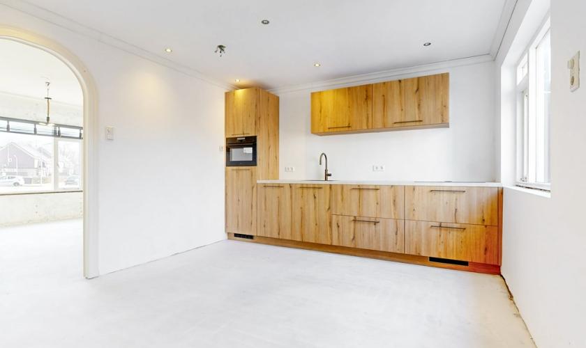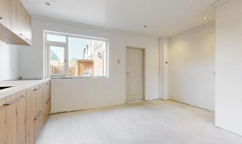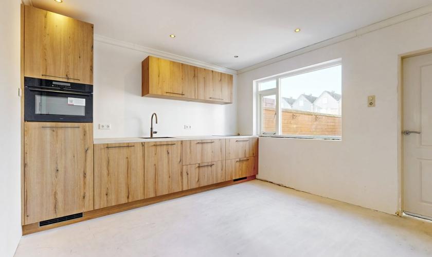 De indeling van de woning is praktisch en biedt volop mogelijkheden. Aan de voorzijde bevindt zich de woonkamer en aan de achterzijde de keuken. Deze ruimtes worden momenteel gescheiden door een tussenmuur, maar kunnen indien gewenst eenvoudig worden samengevoegd tot één royale leefruimte. De keuken is nagelnieuw en nog niet in gebruik geweest, waardoor de nieuwe eigenaar als eerste kan genieten van deze moderne ruimte. De begane grond is bovendien voorzien van vloerverwarming en biedt nog alle ruimte om de verdere afwerking en inrichting geheel naar eigen smaak te realiseren.