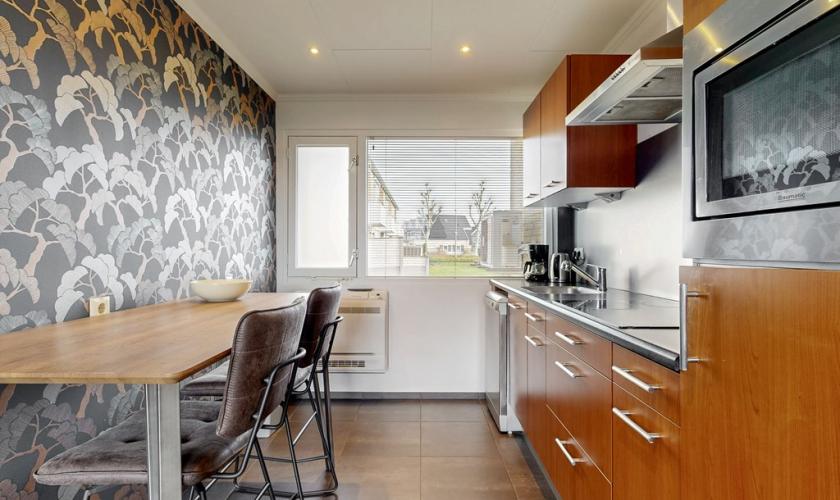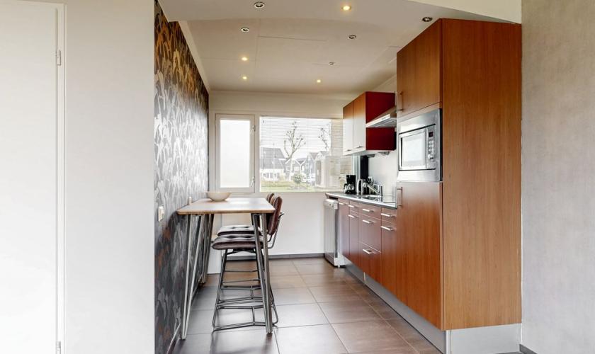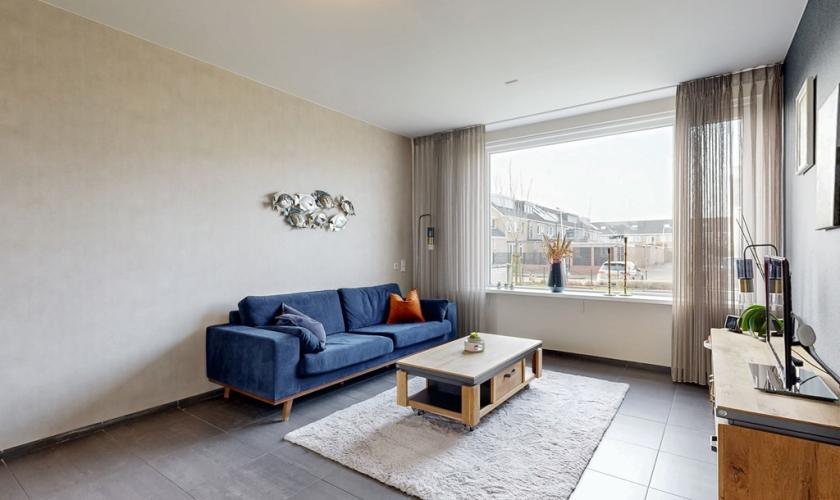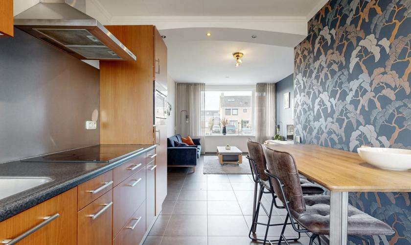 De woonkamer en keuken vormen samen een gezellige en praktische leefruimte. De woonkamer biedt voldoende plek voor een comfortabele zithoek waar je heerlijk kunt ontspannen. Dankzij de ramen komt er veel daglicht binnen, wat zorgt voor een fijne en lichte sfeer. De keuken sluit hier mooi op aan en is praktisch ingericht.