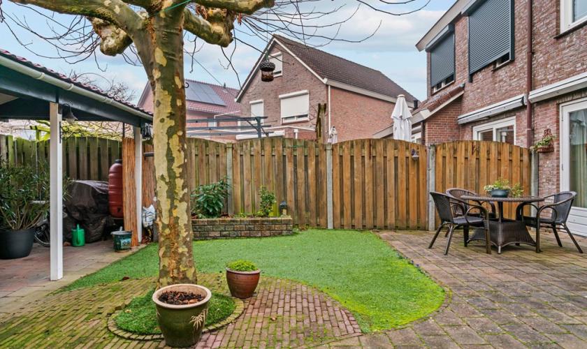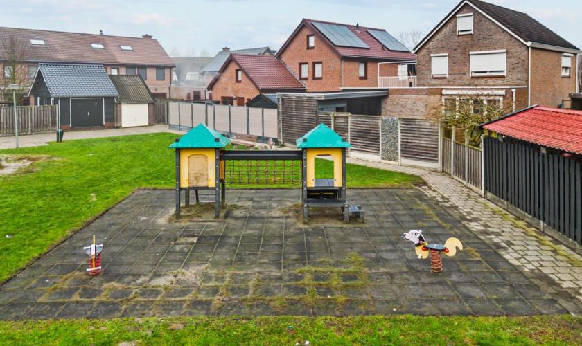 De achtertuin ligt op het zuidwesten en biedt met een perceeloppervlakte van 226 m² volop ruimte om te genieten van het buitenleven. Extra aantrekkelijk is het speeltuintje direct achter de woning, wat deze plek bijzonder geschikt maakt voor gezinnen met kinderen.