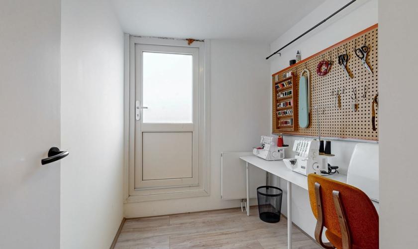 Het absolute middelpunt van de woning is de centraal gelegen keuken. Deze is van alle gemakken voorzien en vormt dé plek om samen te koken, te tafelen en te genieten. Aansluitend is er een praktische bijkeuken, ideaal voor extra bergruimte en dagelijkse voorzieningen.