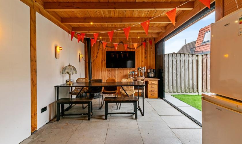De woning is grotendeels voorzien van kunststof kozijnen en afwerking, wat zorgt voor een onderhoudsvriendelijk geheel. Aan de achterzijde bevindt zich een heerlijke grote uitbouw met schuifpui, waardoor binnen en buiten naadloos in elkaar overlopen. Recent is bovendien een ruime tuinkamer gerealiseerd, compleet met een aangebouwde berging – een perfecte plek om het hele jaar door te genieten.