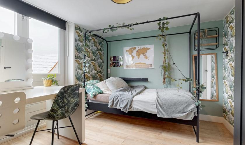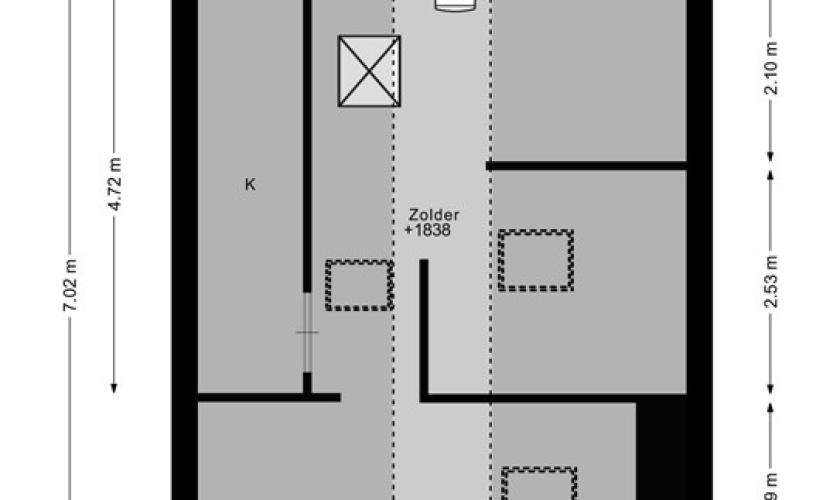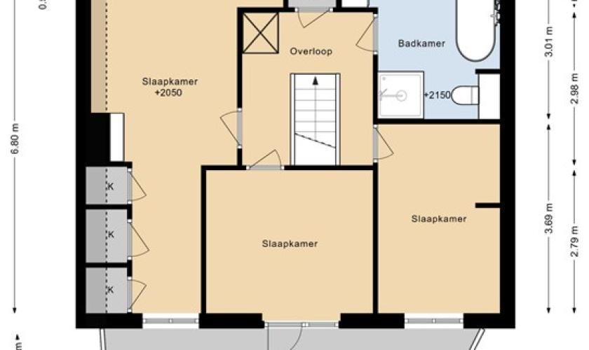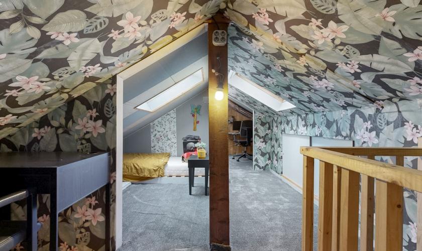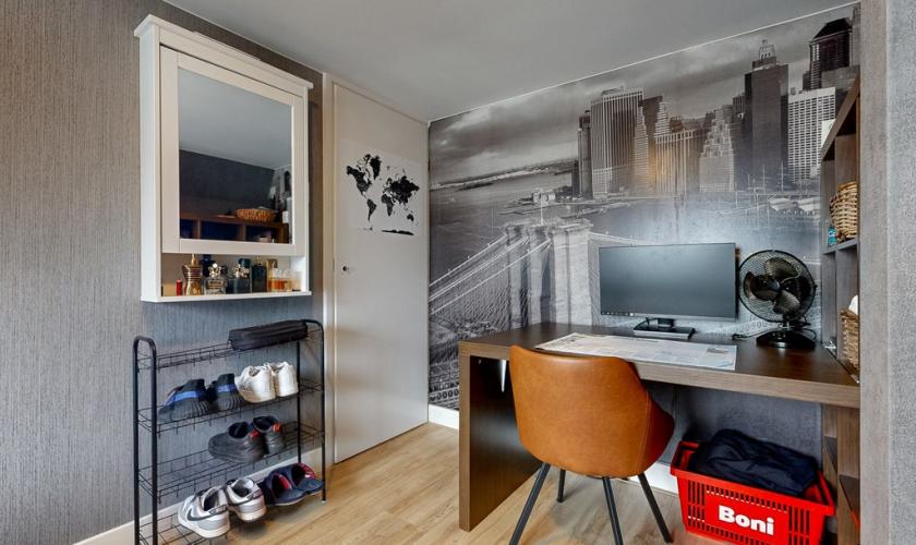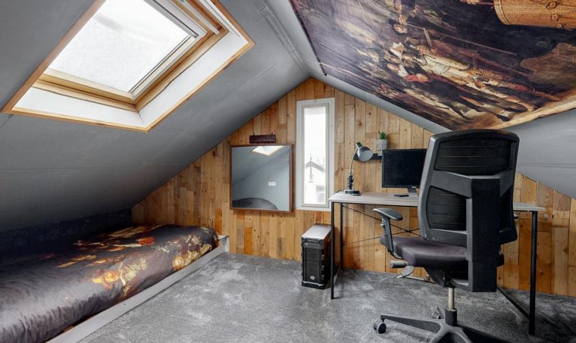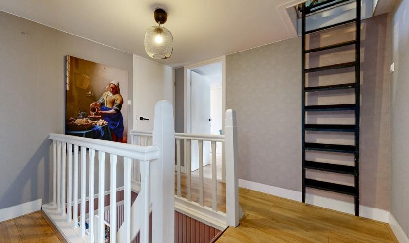 2 slaapkamers en een klein kantoortje. De zolder is te bereiken met een ladder.