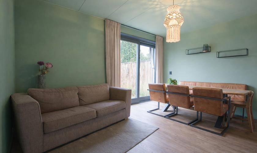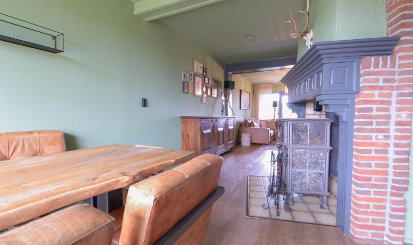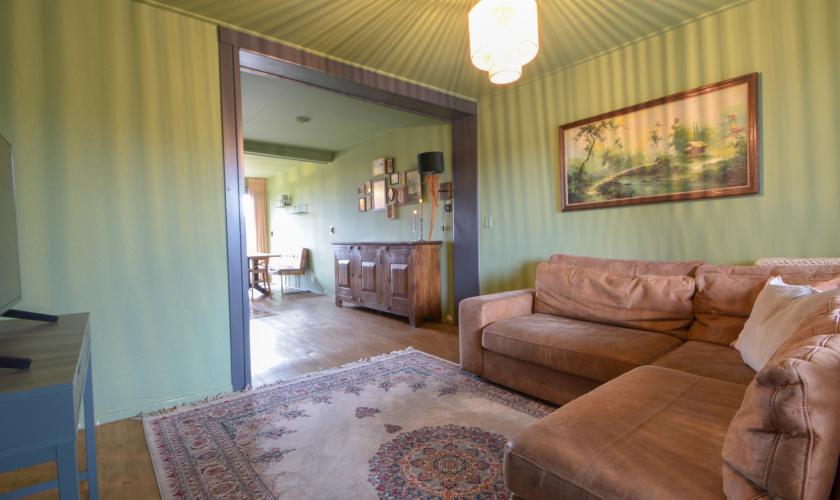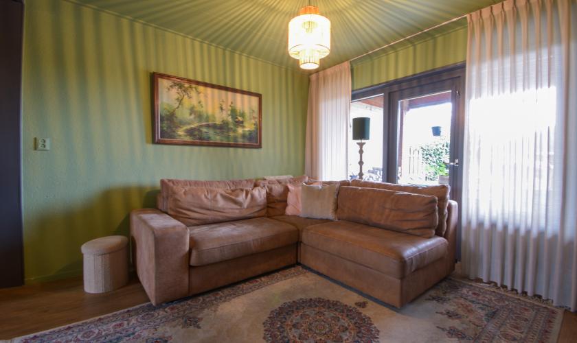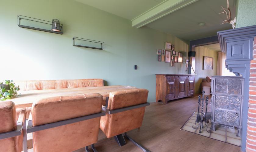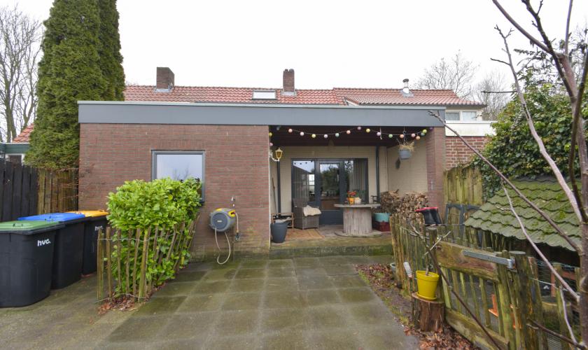 Door de uitbouw aan de achterzijde is er op de begane grond aangenaam veel leefruimte ontstaan met aansluitend aan de achtergevel nog een overkapping waar het ook bij iets minder weer al lekker vertoeven is.