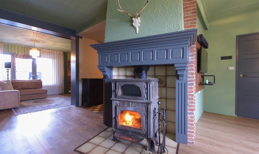 De hoofdverwarming van deze aan achterzijde uitgebouwde woning is een gezellige houtkachel met als bijverwarming infrarood vloerverwarming op de begane grond. Een cv combiketel (Intergas 2020) is wel aanwezig maar wordt (nu nog) alleen gebruikt voor badkamer.