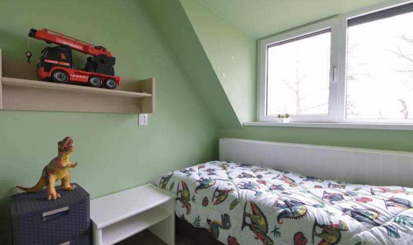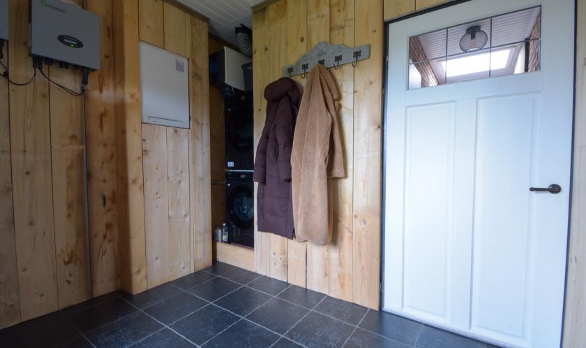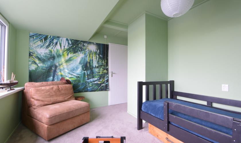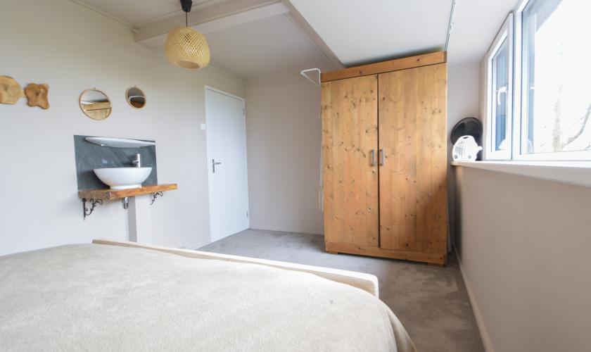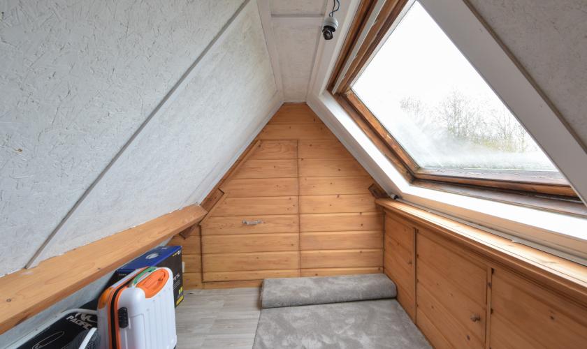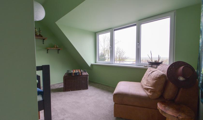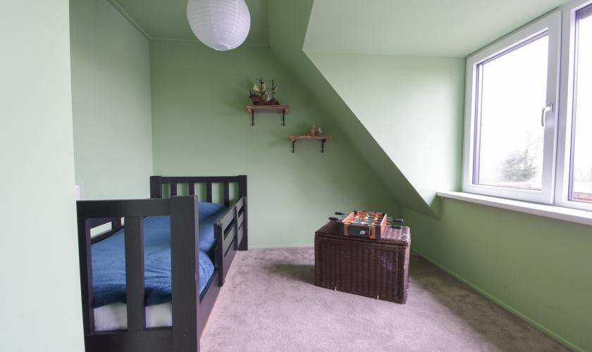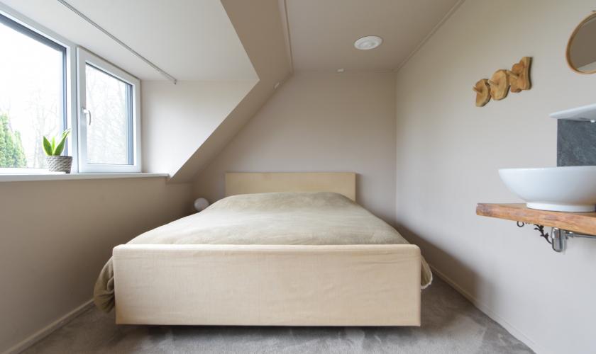 Vanaf één van die slaapkamers gaat een trapje naar de zolderverdieping waar een “kooi” is gerealiseerd als extra slaapplek.