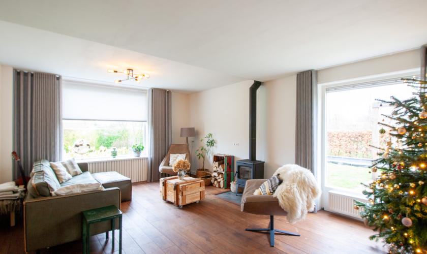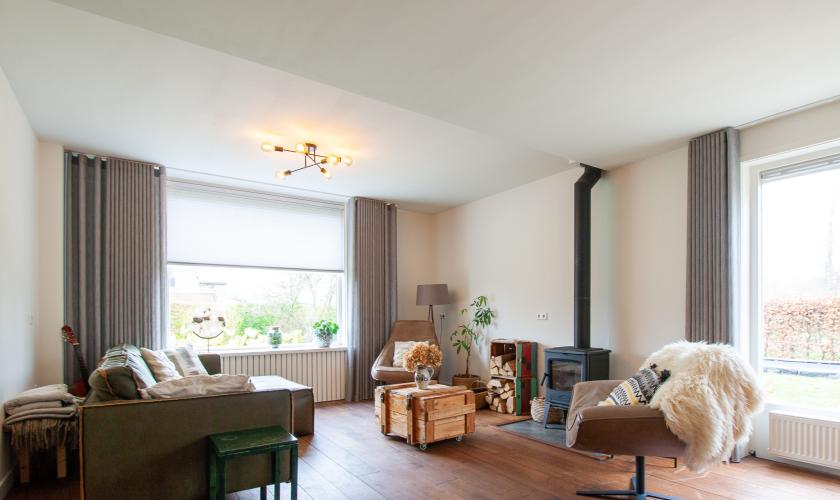 De gehele woning is voorzien van dubbele beglazing waarbij de kozijnen van de oorspronkelijke woning allemaal van kunststof zijn en die van de aanbouw van hout. De woonkamer heeft een massief houten vloer en de gehele aanbouw heeft een fraaie PVC vloer met daaronder de aangename warmte van vloerverwarming.