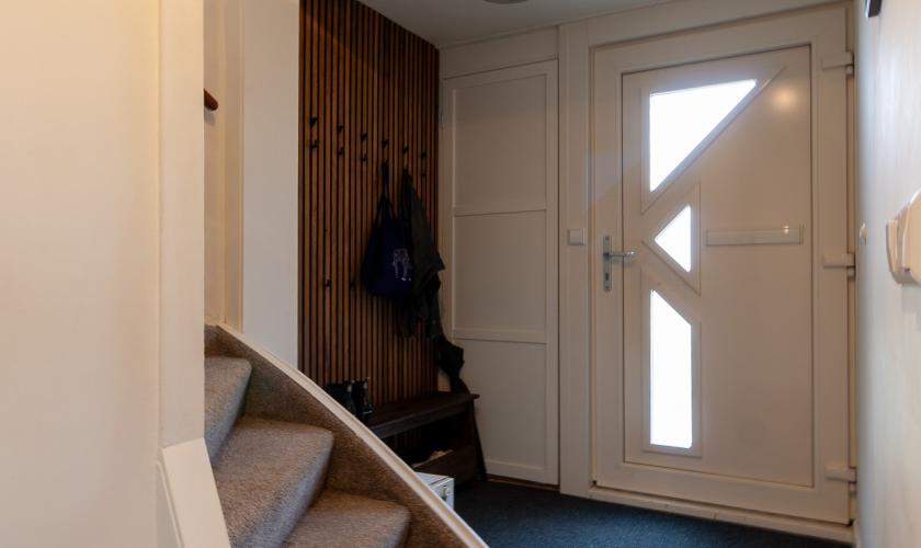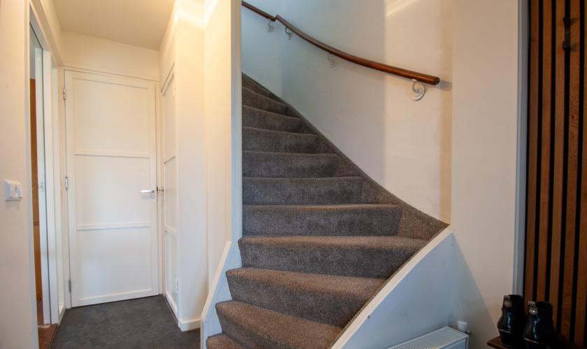 Begane grond: ruime entree, meterkast (vernieuwd), trapopgang, trapkast, badkamer met inloopdouche, wastafelmeubel en vloerverwarming, riante straatgerichte woonkamer voorzien van massief houten vloerdelen, zéér royale tuingerichte leefkeuken met openslaande tuindeuren en aanrecht in modulaire opstelling voorzien van 5-pits gecombineerde gas/inductiekookplaat met brede afzuigkap, oven met ook stoomfunctie, koelkast, vaatwasser, kantoor/werk/slaapkamer, bijkeuken met toilet en luxe kastenwand met daarin aansluitingen wasmachine/droger en opstelling c.v. combiketel.