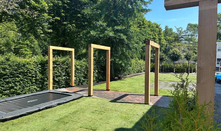 Tuin: Bijzonder ruime tuin aan zij- en achterkant met pergola’s en houten schuur met loungeachtige overkapping en op elk moment van een zonnige dag ergens in je tuin de zon of de schaduw.