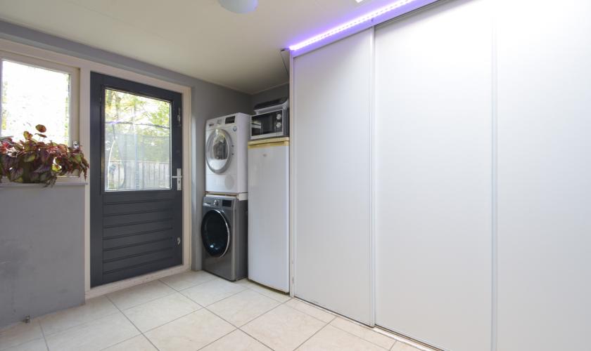 Aan de achterzijde grenst de tuin aan een brede bosstrook, wat zorgt voor heel veel privacy.