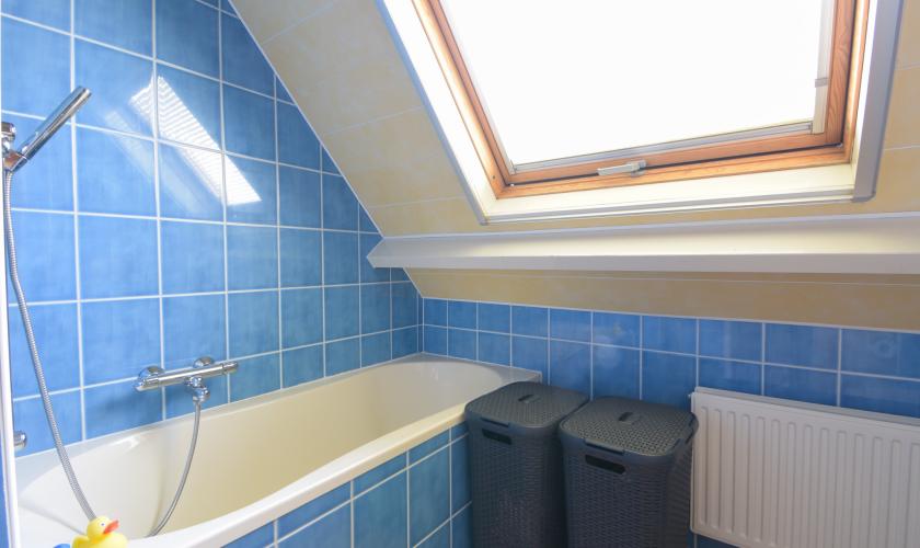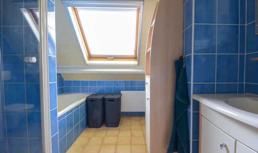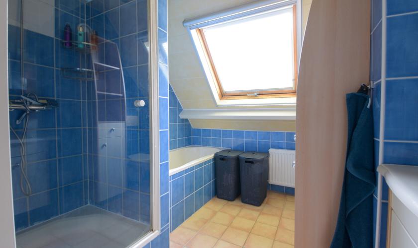1e verdieping: overloop, 3 slaapkamers, badkamer voorzien van ligbad, douche, toilet en wastafel en veel bergruimte “achter de luiken”.