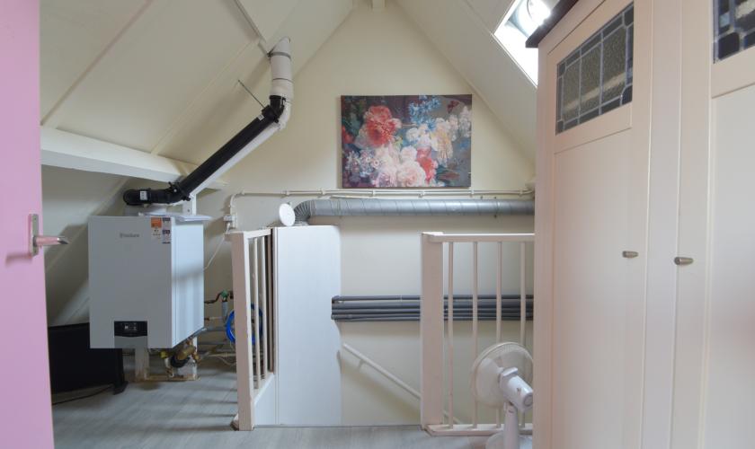 2e verdieping: overloop, extra slaapkamer, c.v. ruimte (Vaillant 2023 huurkoop) en bergruimte.