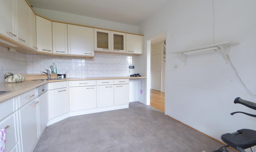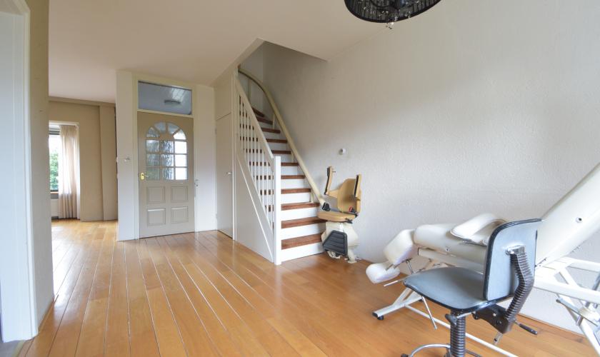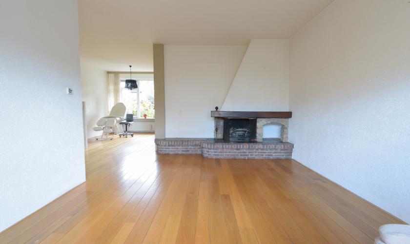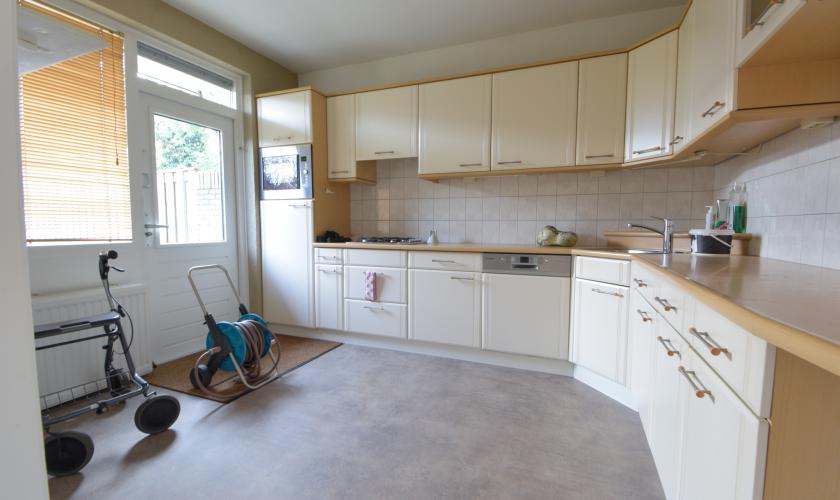 Begane grond: royale entree/hal, toilet, meterkast, riante Z-vormige woonkamer met trapopgang en open haardpartij, keuken in hoekopstelling voorzien van vaatwasser, koelkast, oven gaskookplaat en afzuigkap.