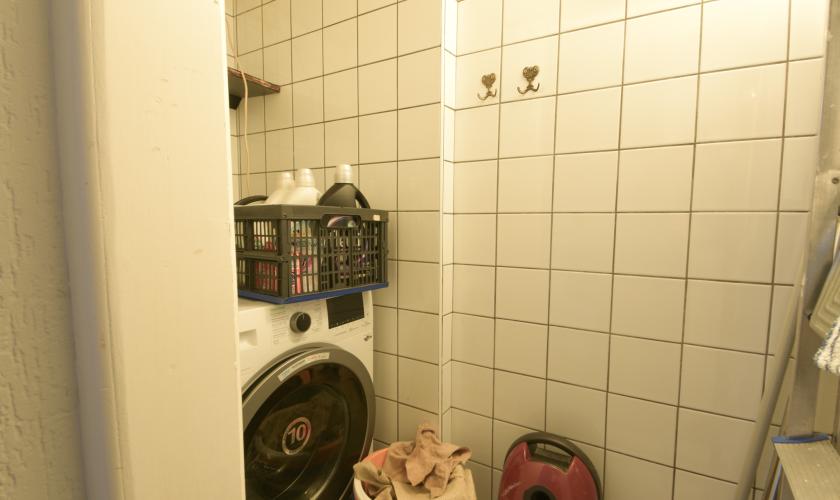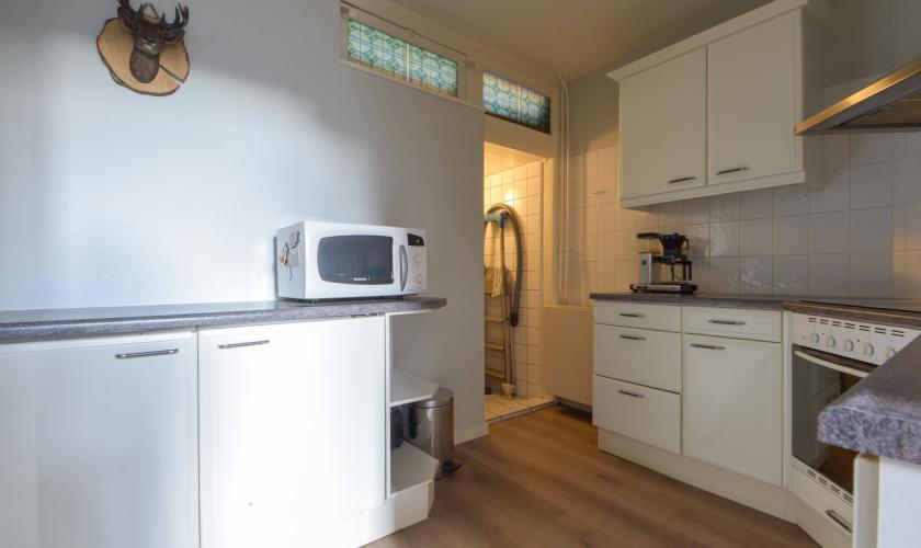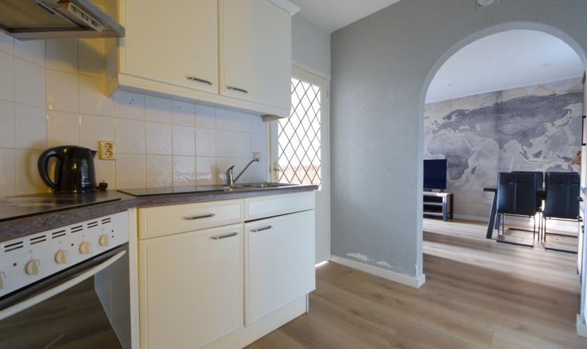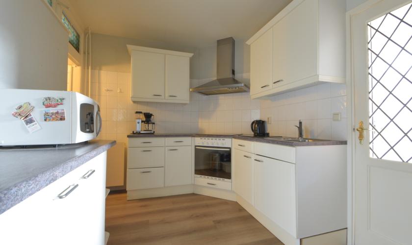 Indeling: entree/hal, meterkast, toilet, trapopgang, woonkamer, keuken met aanrecht in hoekopstelling voorzien van inbouwapparatuur (afzuigkap, elektrische kookplaat, koelkast, oven), wasruimte met aansluiting wasmachine.